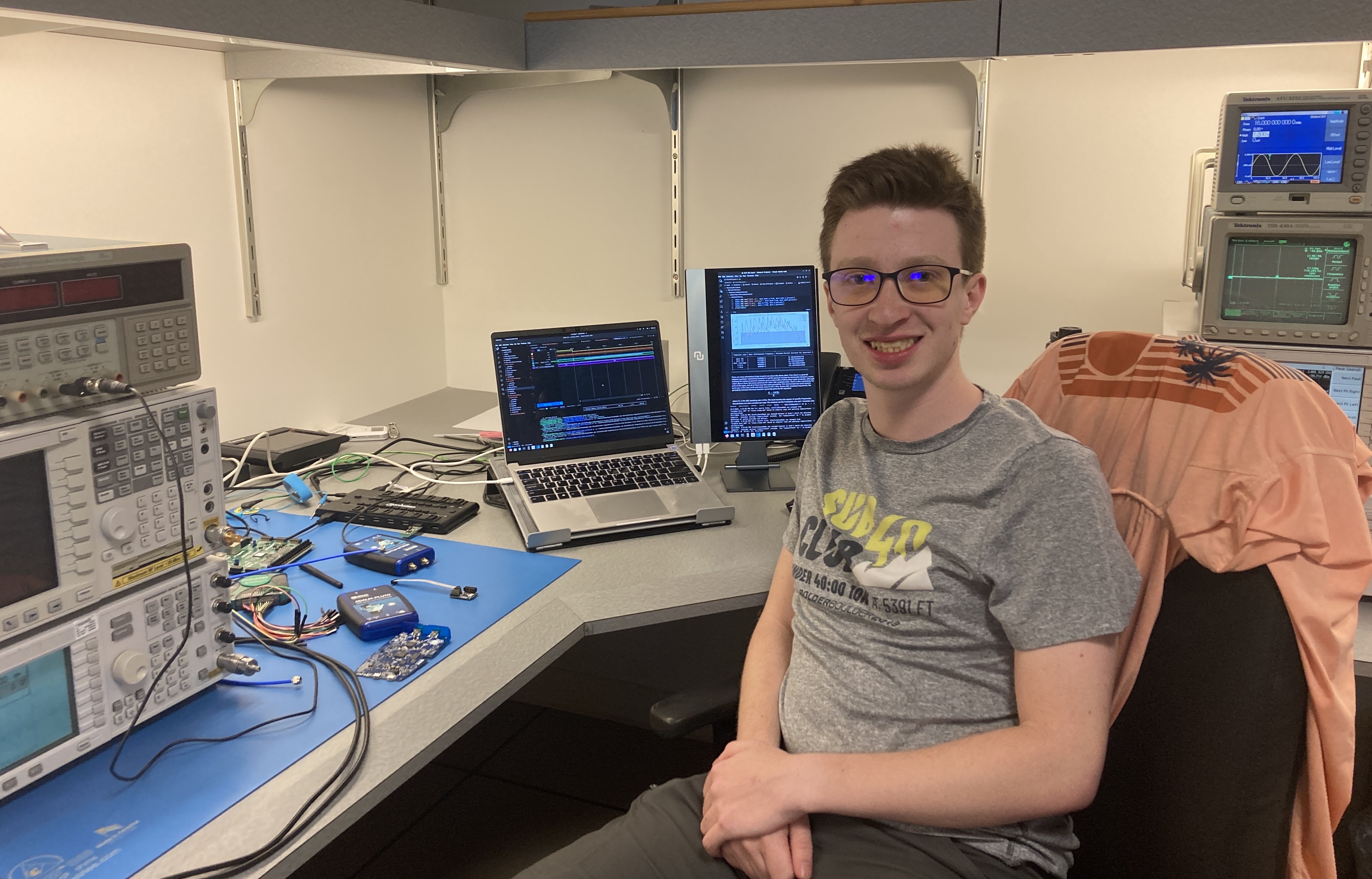 Brandon is working on designing a BLE-compatible prototyping system around Adalm-Pluto Software Defined Radios. This has included work on understanding the BLE 1M PHY, creating scripts to assemble and decode valid packets, and developing HDL code to implement clock and data recovery on the FPGA onboard an Adalm-Pluto.